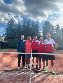 Stefan Honig gewann, erneut sehr souverän, in zwei Sätzen. An Position 2 war Thorsten Kelm von einer Katzenallergie geschwächt und verlor nach hartem Kampf im CT. Das Michael Frantz ebenfalls keinen Punkt beisteuern konnte war zum Glück nicht vorentscheidend, weil Mirko Claus seinen Gegner nach nervösem Beginn immer stärker dominierte und zu einem klaren Zweisatzsieg kam. Stefan Honig hatte dann die richtige Idee für die Doppel: Thorsten und Michael Gessner an Eins gegen die Eins und Zwei der Gastgeber und Stefan und Mirko auf Platz zwei gegen ein ebenfalls starkes Team. Es waren enge Matches, aber letztendlich und nach tollen Ballwechseln besonders auf dem Centercourt jubelten die Rot-Weißen über einen hart erkämpften 4:2 Auswärtssieg! Weiter geht es in zwei Wochen mit dem Rückspiel gegen Elnhausen, wieder auf Sand - und zumindest bis dahin mit weißer Weste.