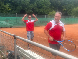 Erfahrung ist im Tennis ein wertvolles Pfund. Das zeigte Hans-Dieter Priemer im Doppel 1 an der Seite von Thorsten Kelm gegen Michelbach. Die beiden setzten sich souverän 6:2, 6:4 gegen ihre Gegner durch. Mit dem gleichen Ergebnis gewannen auch Mirko Claus und Michael Frantz auf Platz 2. Die zwei Doppel waren dabei die Kirsche auf der Torte, denn zuvor waren schon alle vier Einzel an RW Ebsdorfergrund gegangen. Stefan Honig (6:1, 6:2), Thorsten Kelm (6:2, 6:1), Michael Frantz (6:4, 6:2)und Mirko Claus (5:7, 7:5, 10:7) gingen bei sengender Hitze als Sieger vom Platz. So stand am Ende ein klarer 6:0 Sieg auf dem Spielbogen. Nach zwei Spieltagen stehen die 50er auf Platz 1 in der Tabelle und haben nun erstmal einige Wochen Spielpause. Ziel ist, die tolle Form im Training zu konservieren und im nächsten Spiel den Platz an der Sonne zu verteidigen.